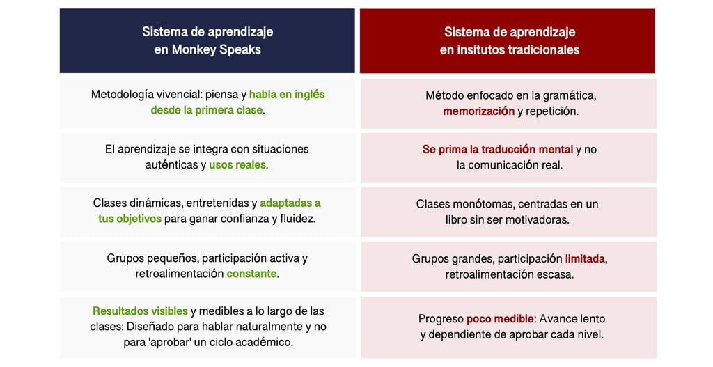 Habla inglés desde la primera clase. Te darás cuenta de tu progreso después de cada clase.